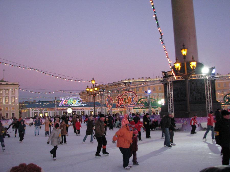 Московской площадях. Здесь вас ждут елки, огни, угощения и развлечения. На Дворцовой можно прокатиться с горки на ватрушке. Катки открыты в